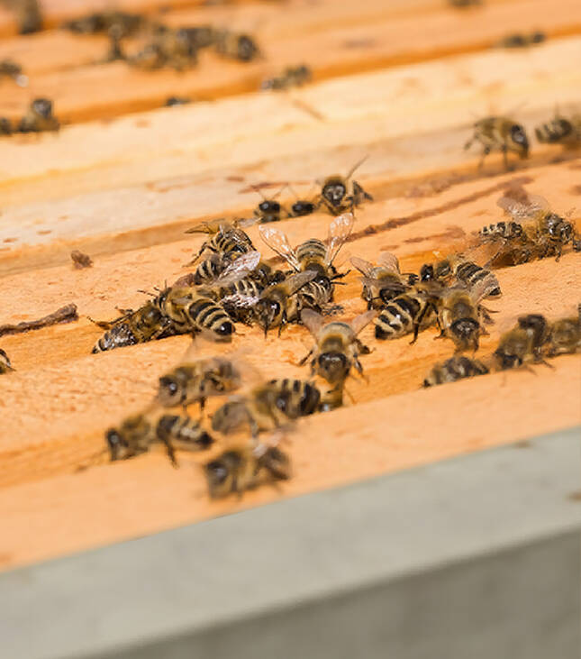 Bee Droppings (Cleansing Flights): On warm, sunny days after a period of confinement, bees perform "cleansing flights," where they defecate mid-air. This can result in small yellow dots on cars, outdoor furniture, and laundry hanging out to dry.